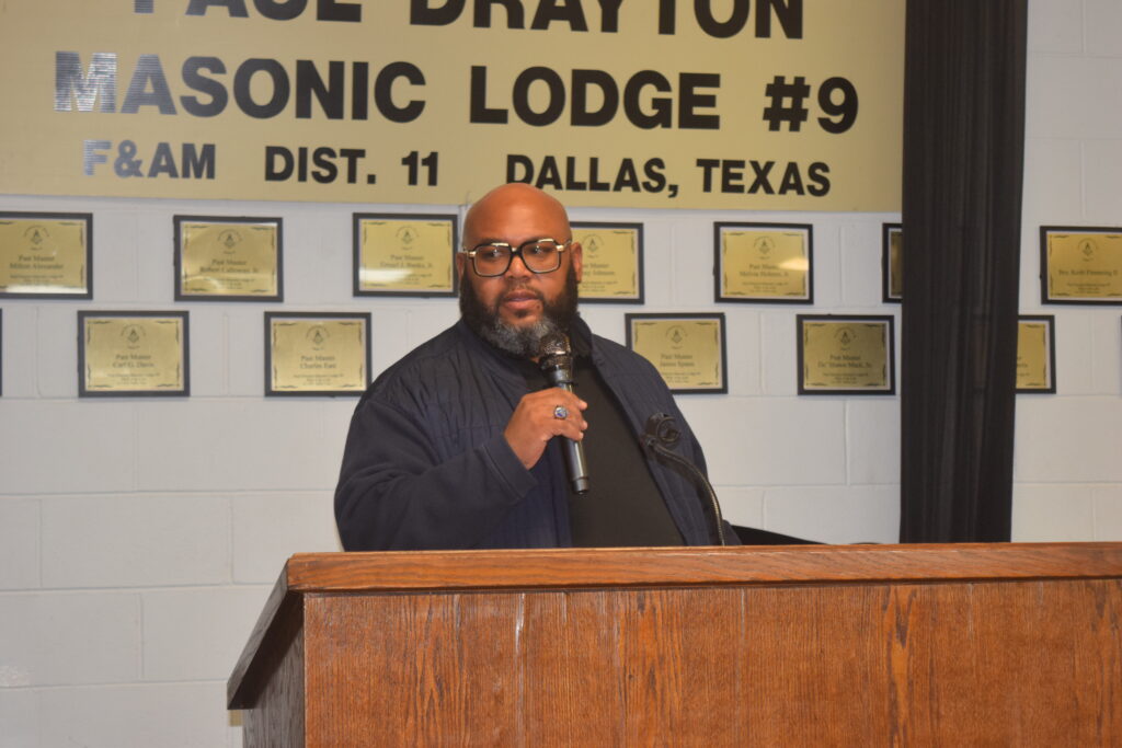 District Deputy Grand Master-District #11 Terrance Sauls opened the evening with greetings and called for a prayer from Special District Deputy Grand Master Edwin D. Moore. He then called on Special District Deputy Grand Master John Webb to provide an update on the forthcoming Deputies Training. Afterwards, he called on Special District Deputy Grand Master Vic Bates to provide an update on the upcoming District #11 events and activities, including the forthcoming New Year’s Eve Party, Martin Luther King Jr Parade, and District Scholarship Banquet.