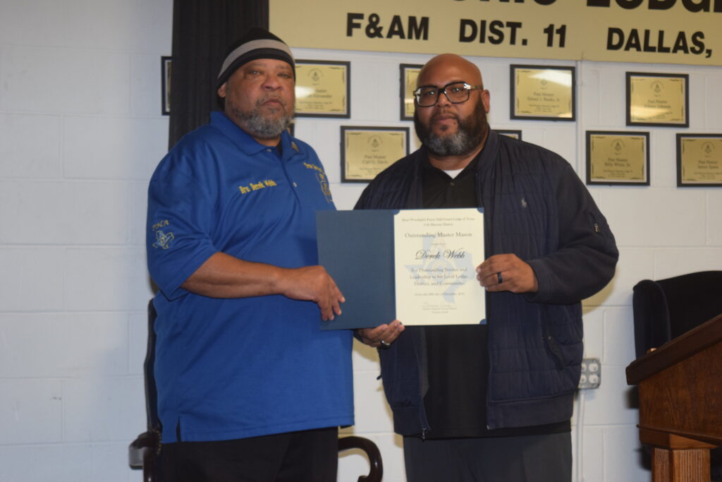 • Outstanding Master Mason – Derek Webb for his outstanding service
